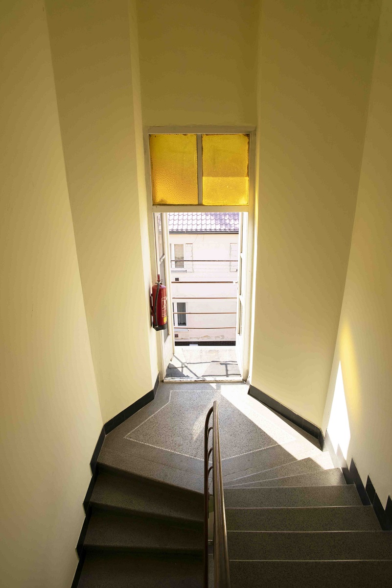 In the courtyard, there is a small two-storey residential house with two apartment units. There is a seperate apartment in the layout of 2+kitchen corner on each floor. The windows to the courtyard provide a nice green area view, the surroundings are well arranged. Both houses have the basements so that each apartment has a cellar premises and a common garden in the courtyard pertained to the entire residential complex. The parking is possible in the garage on the first above ground floor and also along the street in both directions.