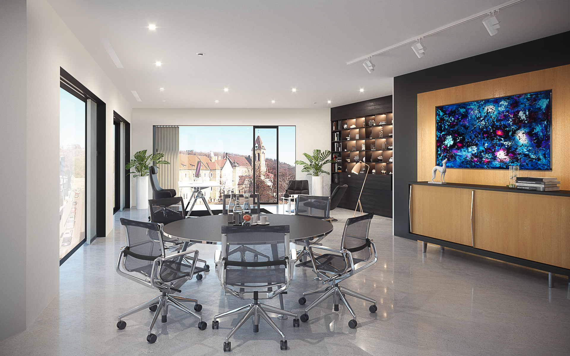 The generous and pleasant welcome begins in the entrance area to Holečkova House. There is an open and uninterrupted reception zone linked to a pleasant lounge area on the first floor. The large-format windows create a representative, peaceful and gracious area of premium quality intended for socialising or relaxing. It essentially gives pleasure to everyone entering or leaving the building.