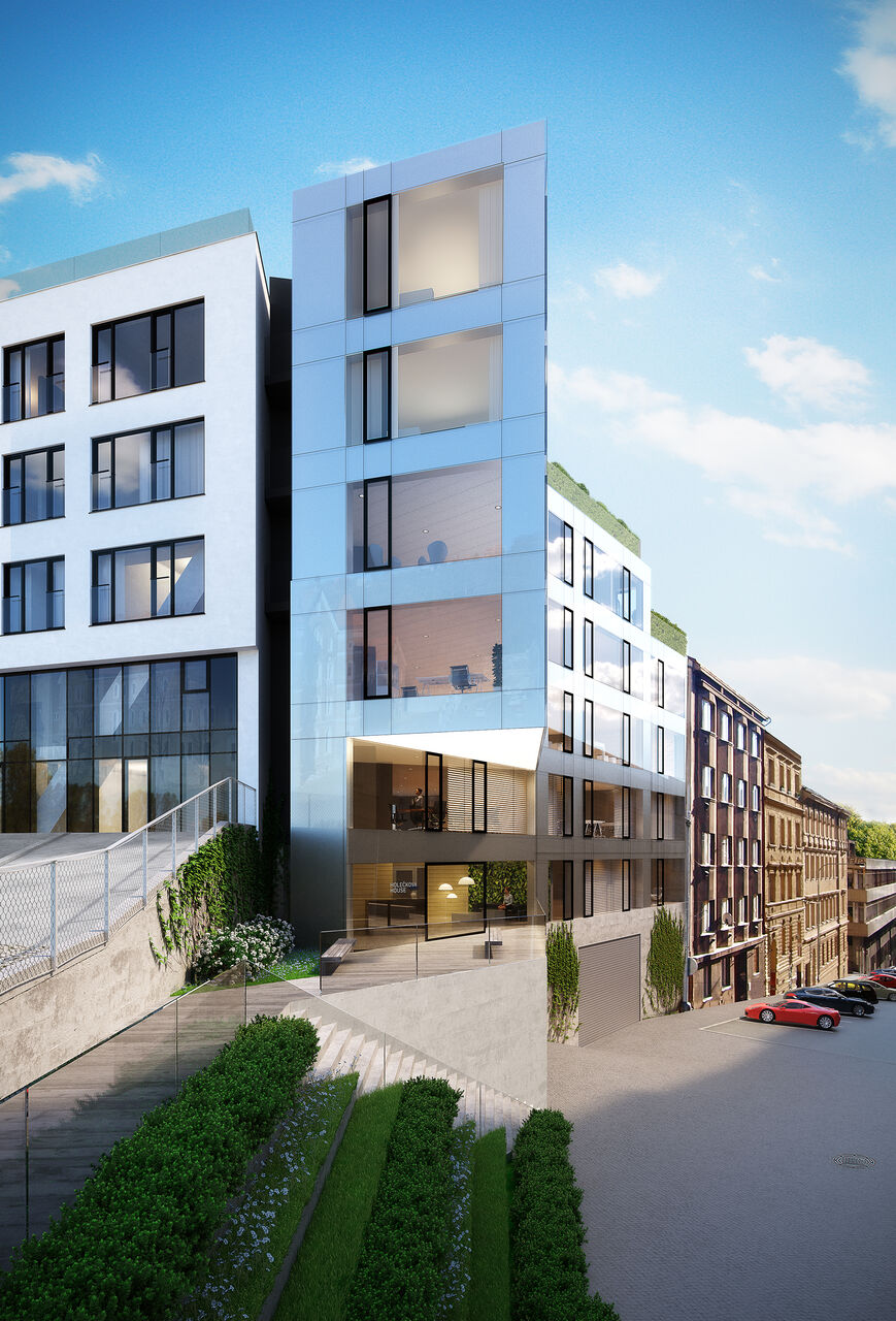 Holečkova House offers modernists with a passion for traditional concepts office areas and housing in a premium residential district sought out by solvent clients. The requirement of high standards will be satisfied by modern technologies and timeless architecture and design.
